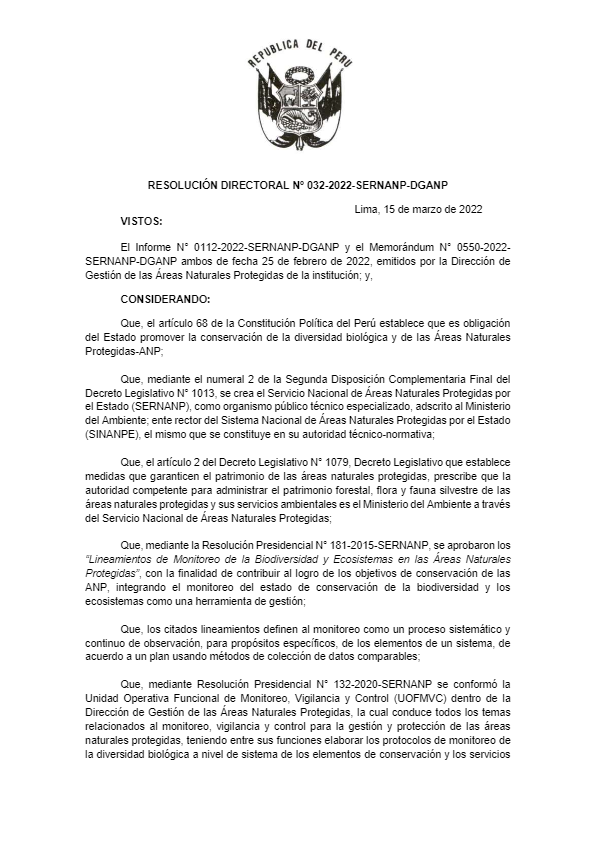 View Larger Image RESOLUCIÓN DIRECTORAL 032 2022 SERNANP DGANP.pdf RESOLUCIÓN DIRECTORAL 032 2022 SERNANP DGANP.pdf Anais Gonzales2022-04-21T13:04:20-05:00