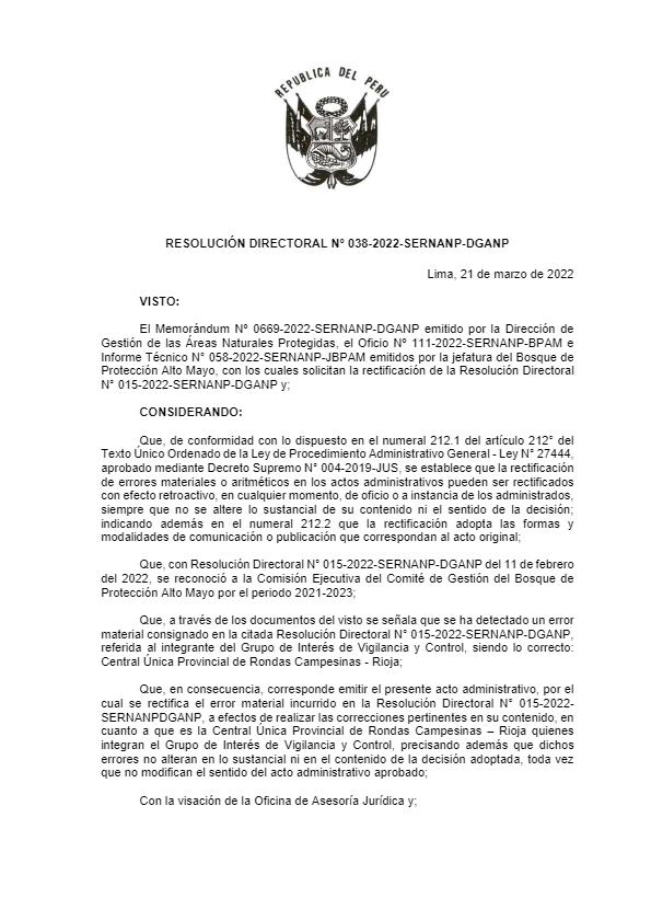 View Larger Image RESOLUCIÓN DIRECTORAL 038 2022 SERNANP DGANP.pdf RESOLUCIÓN DIRECTORAL 038 2022 SERNANP DGANP.pdf Anais Gonzales2022-04-21T12:45:39-05:00
