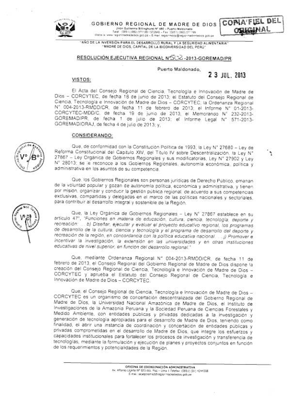 View Larger Image RER 0502 2013 Crean Consejo Directivo Corcytec RER 0502 2013 Crean Consejo Directivo Corcytec Programa Conservacion2013-08-31T21:41:24-05:00